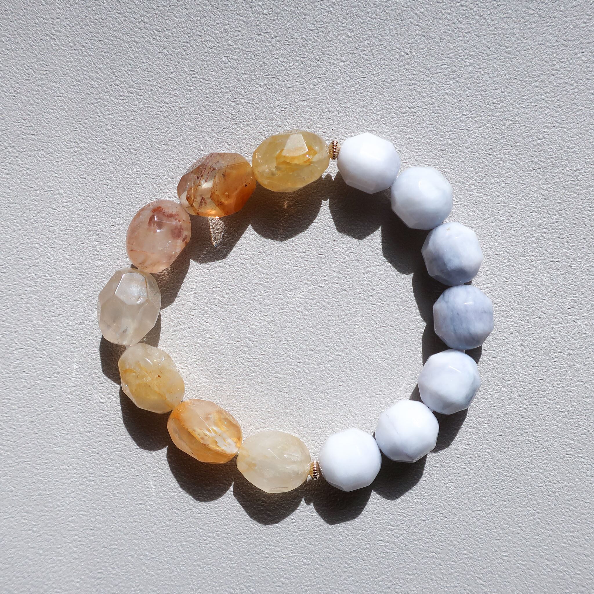 【14KGF使用】天然石 ドロマイト×ヘマタイトインクォーツブレスレット[Yugure Bracelet] オレンジ ブルー 空 大ぶり 金属アレルギー対応