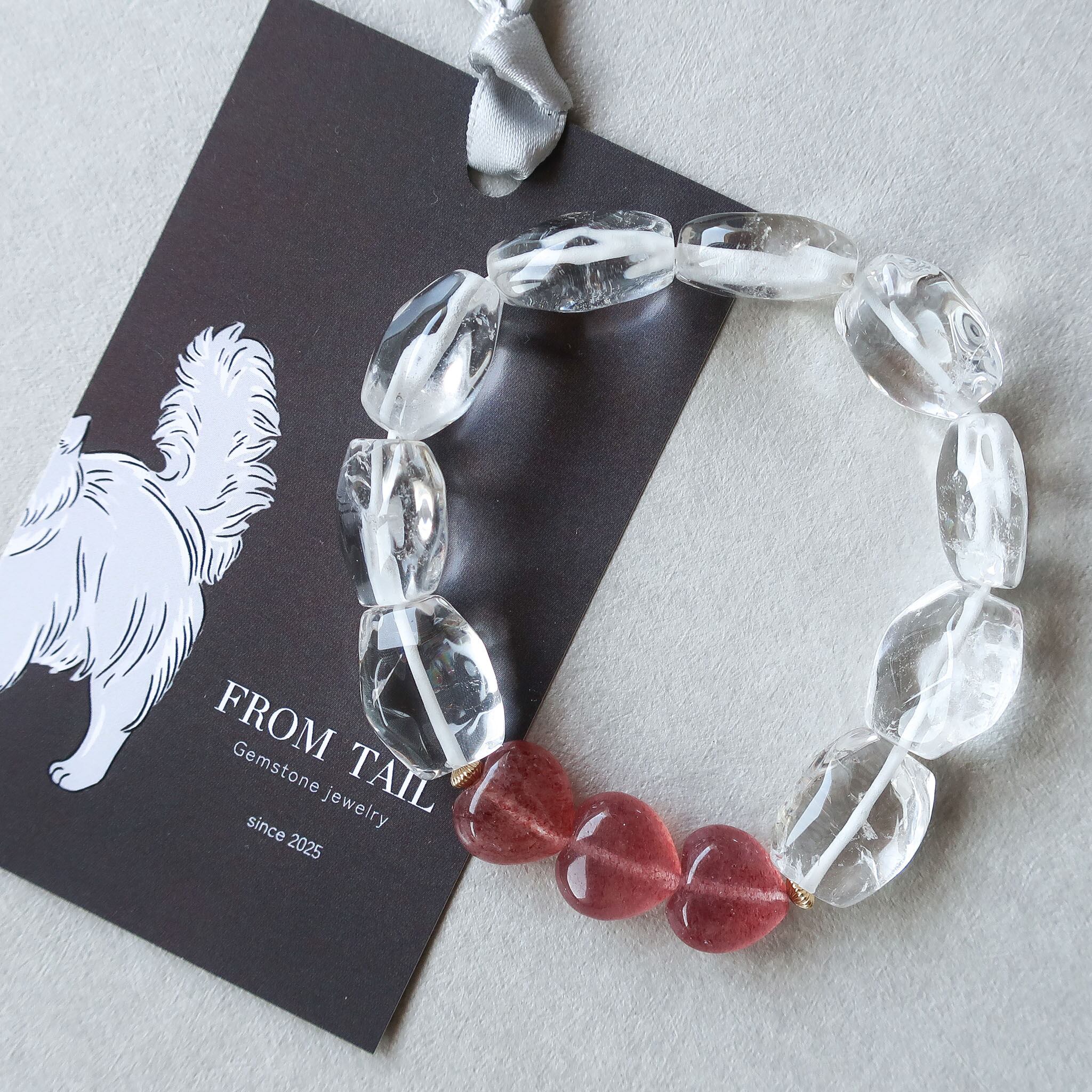 ハート型のストロベリークォーツをそっと忍ばせたブレスレット。