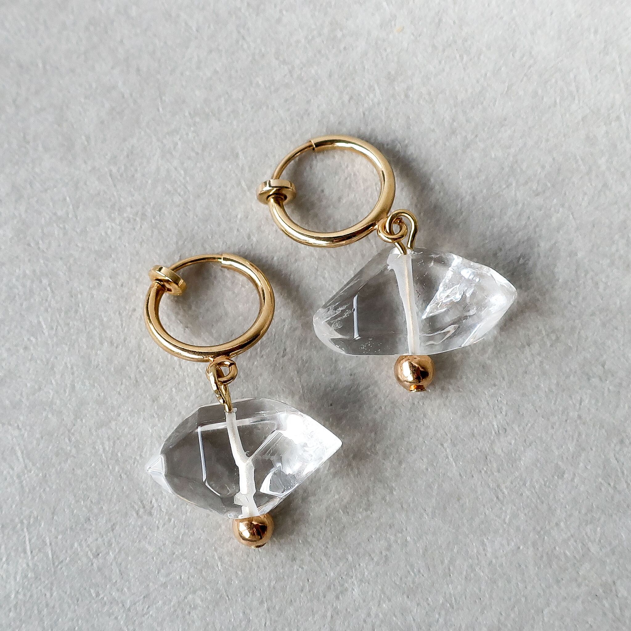 天然石 クリスタルフープイヤリング[Crystal Hoop Earrings]大人 おしゃれ 透明 クリア 揺れる ゴールド