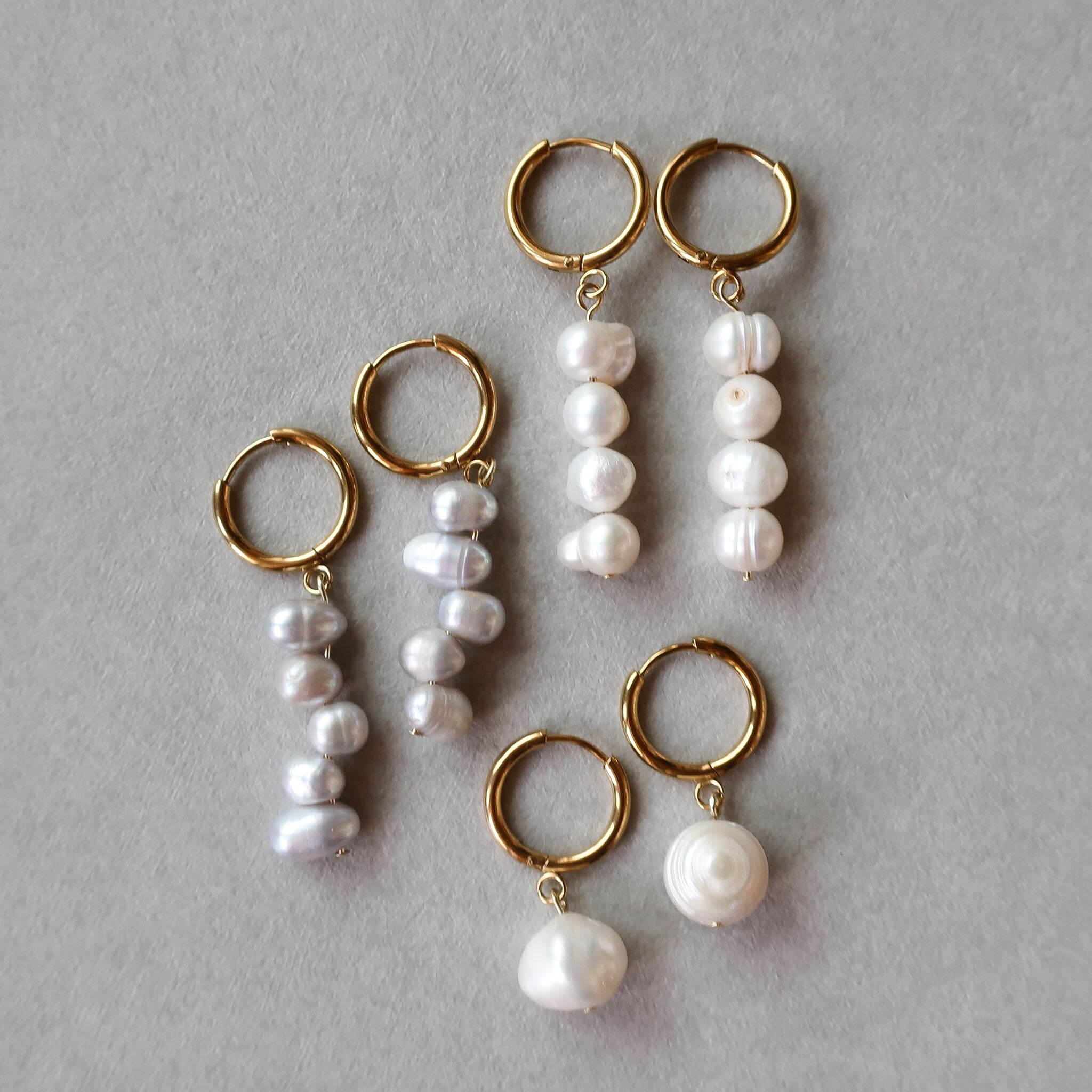 耳元でやわらかに揺れるパールの光沢は、デイリーにもフォーマルにもさりげなく馴染みます。