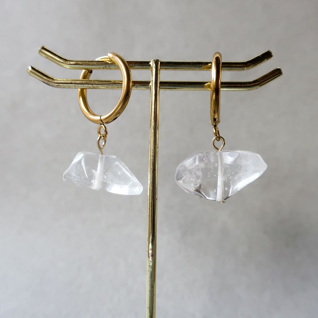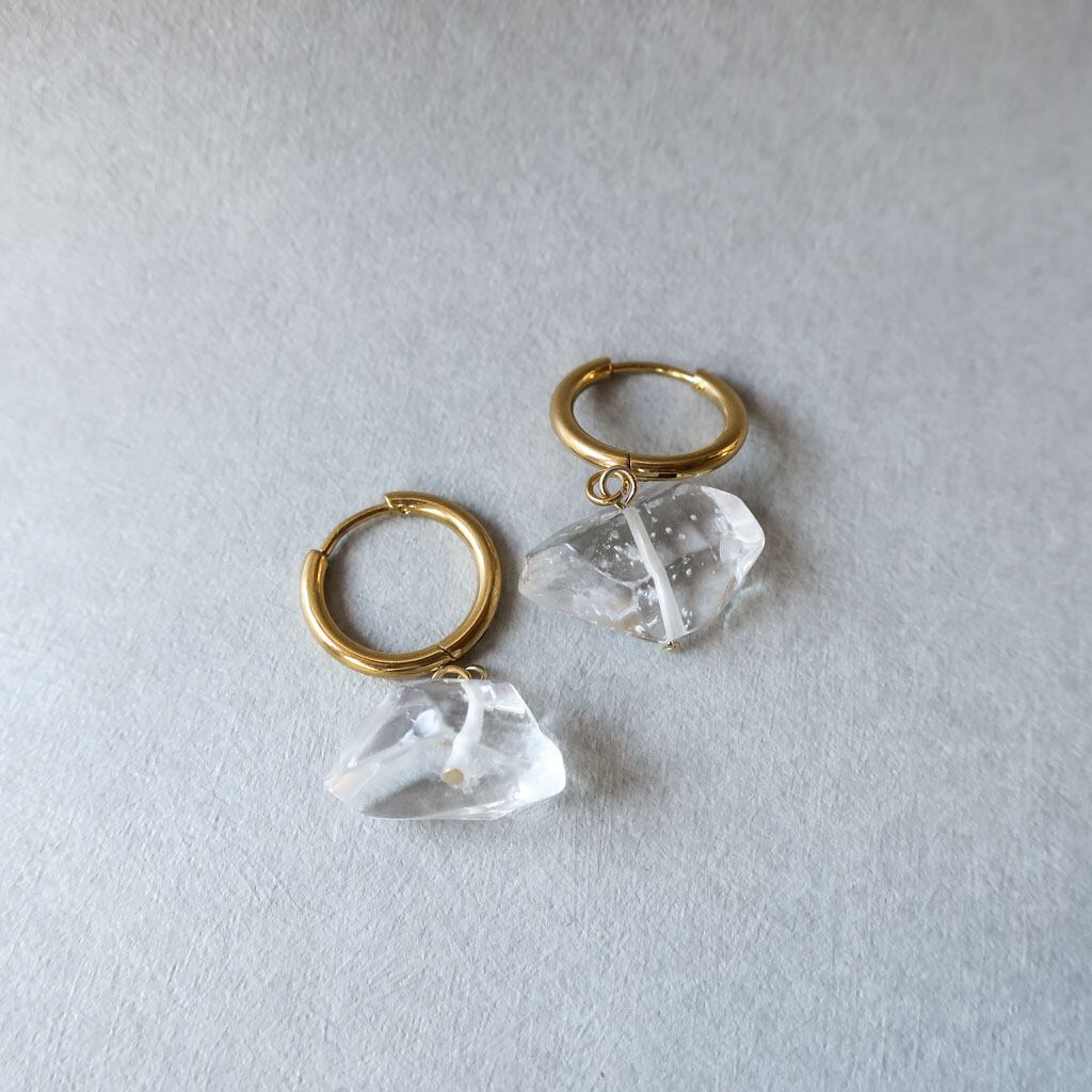 透明感あふれるクリスタルをそのまま活かしたフープピアス。